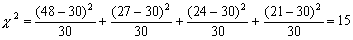 H1: コンピュータからの4つの数値の出現率は,同じでない。